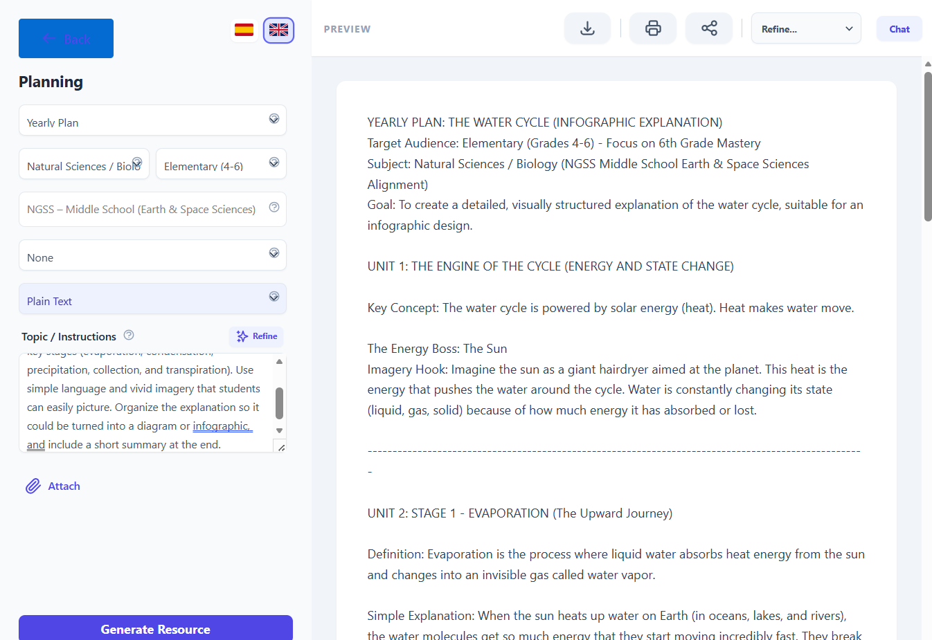 Use case: “I need a visual explanation of the water cycle for 6th grade.”