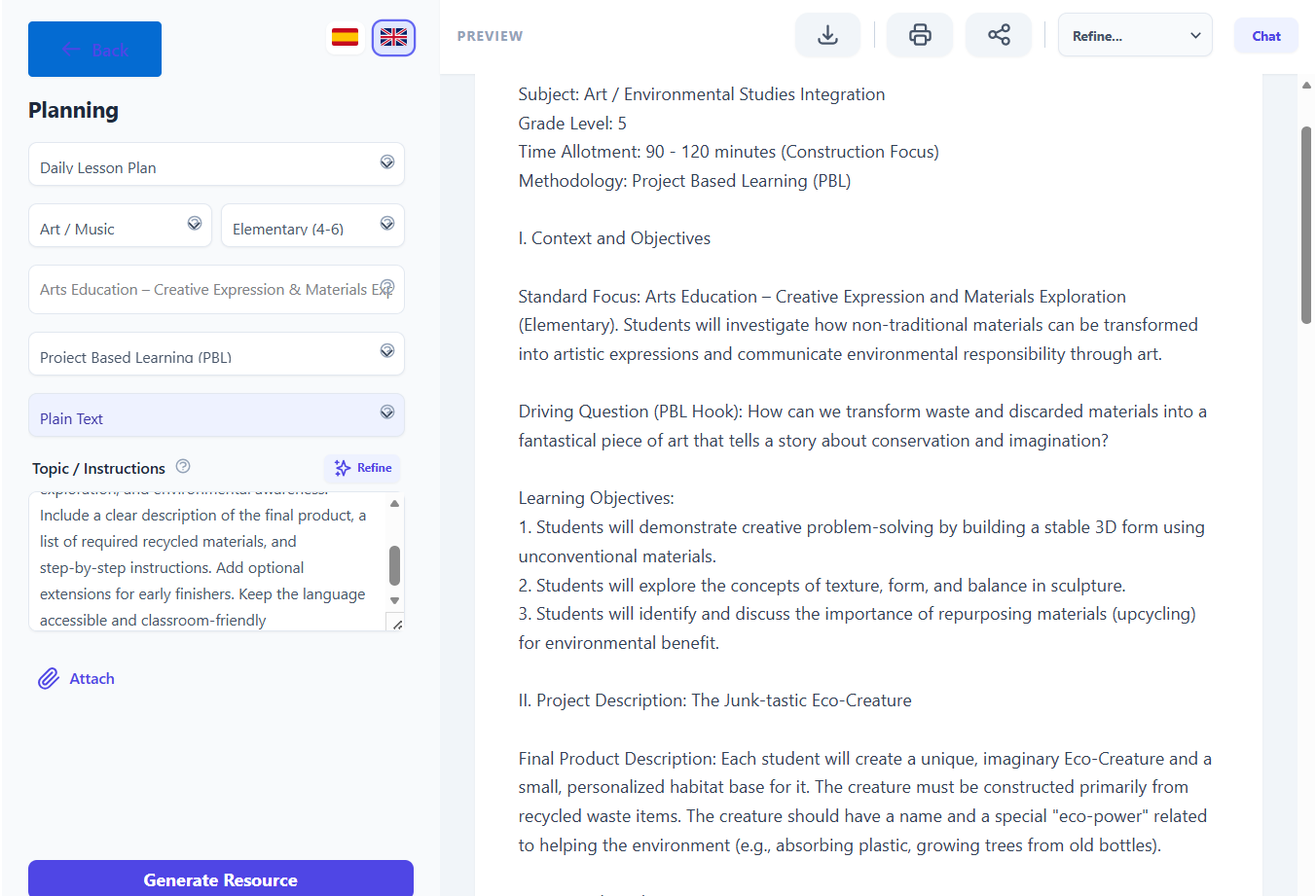 - Tag it as “Creative Arts – Recycled Materials – 5th Grade – Daily Plan” for future use.